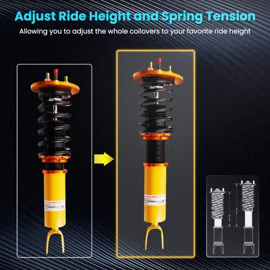 車高調 アコード CB CD サスペンション 90-97 全長調整式 24段減衰調整 イエロー ホンダ Maxpeedingrods